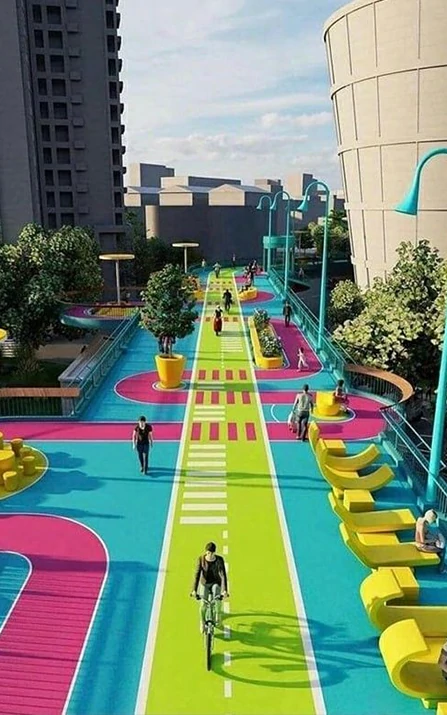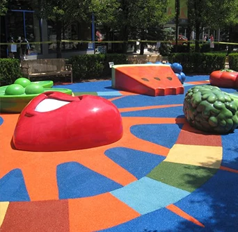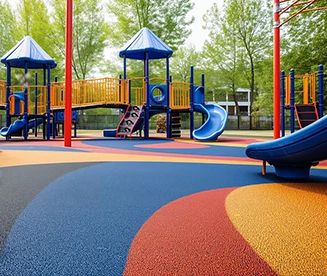 EPDM plastic safety flooring covers the area underneath and around the equipment, effectively absorbing the impact energy when falling from a height or swinging out of a swing to protect children's joints.
