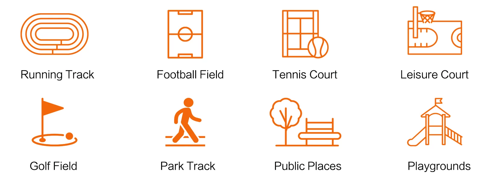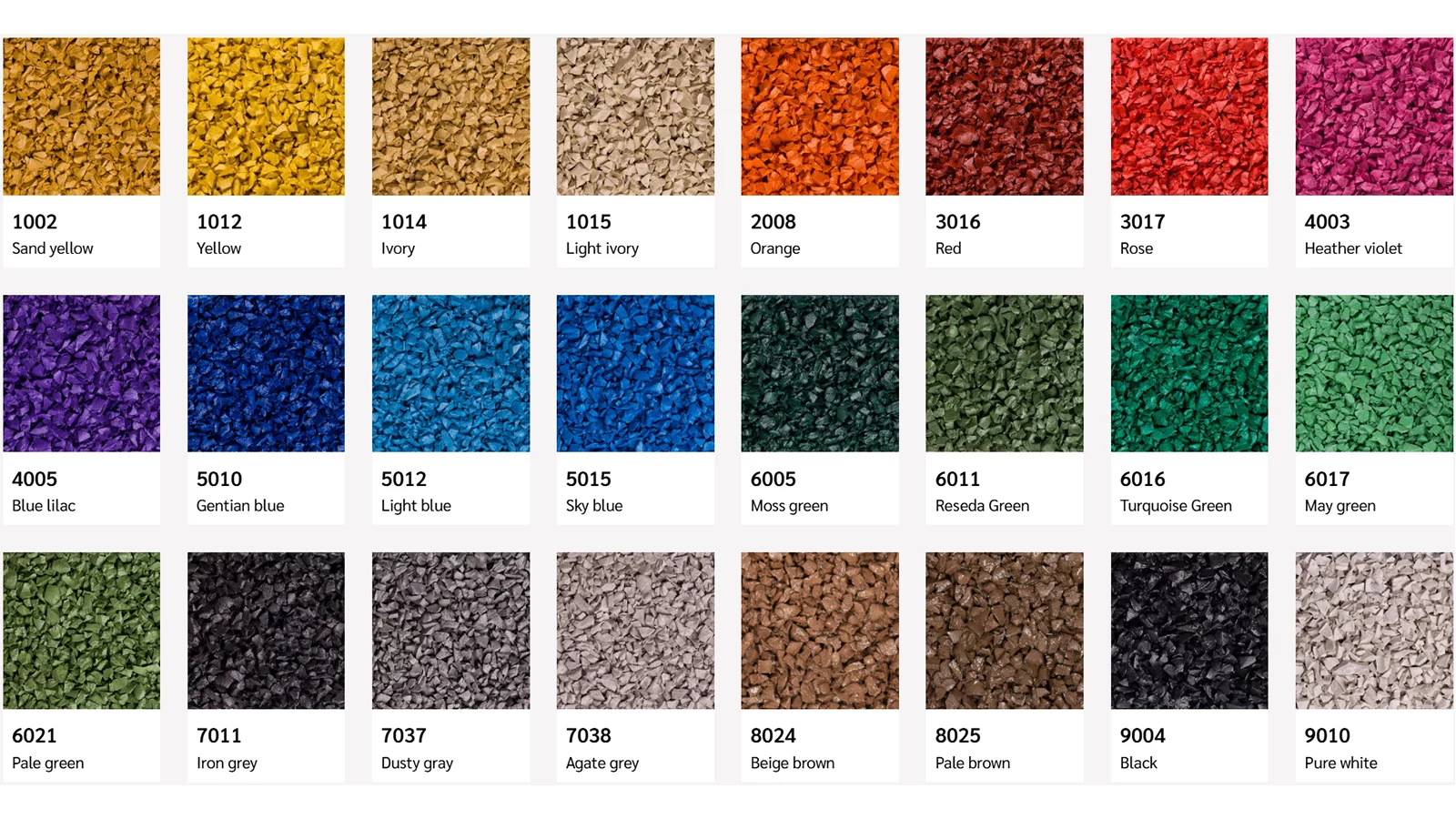 Brightly colored, elastic granules are ideal for creating safe surfaces in playgrounds, professional tracks, and other sports and leisure facilities. They can also be used in public areas.