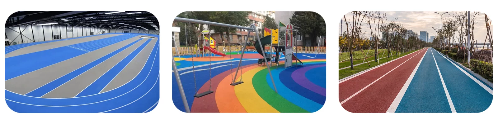 Description: Environmentally friendly, highly resilient, can be used for running track or amusement park flooring surfaces