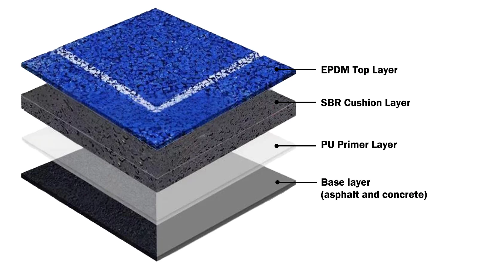 This track is typically constructed by mixing high-strength, high-elasticity EPDM particles with polyurethane adhesive, followed by professional installation. Its surface can be designed with anti-slip granular texture, providing excellent shock absorption and energy return functionality. This effectively reduces the risk of sports injuries while enhancing athletic performance and comfort.