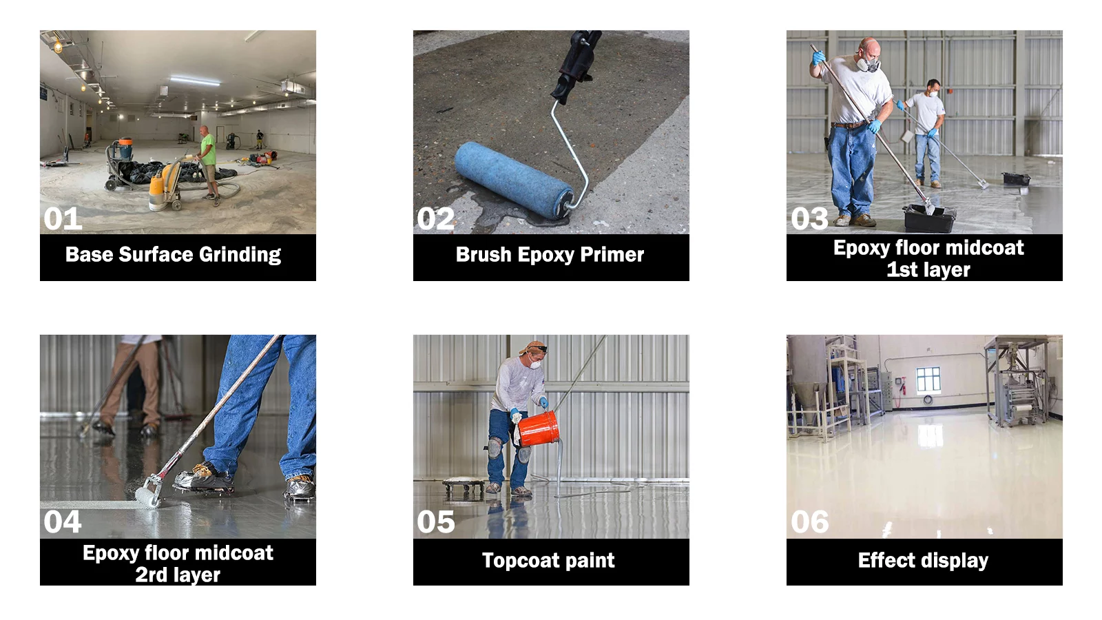 1. High-standard substrate preparation: Thoroughly mill, sandblast or finely grind the concrete substrate to fully expose the sound base layer. All oil residues and contaminants must be removed, ensuring the substrate achieves the specified roughness and flatness required to guarantee coating adhesion and corrosion protection.