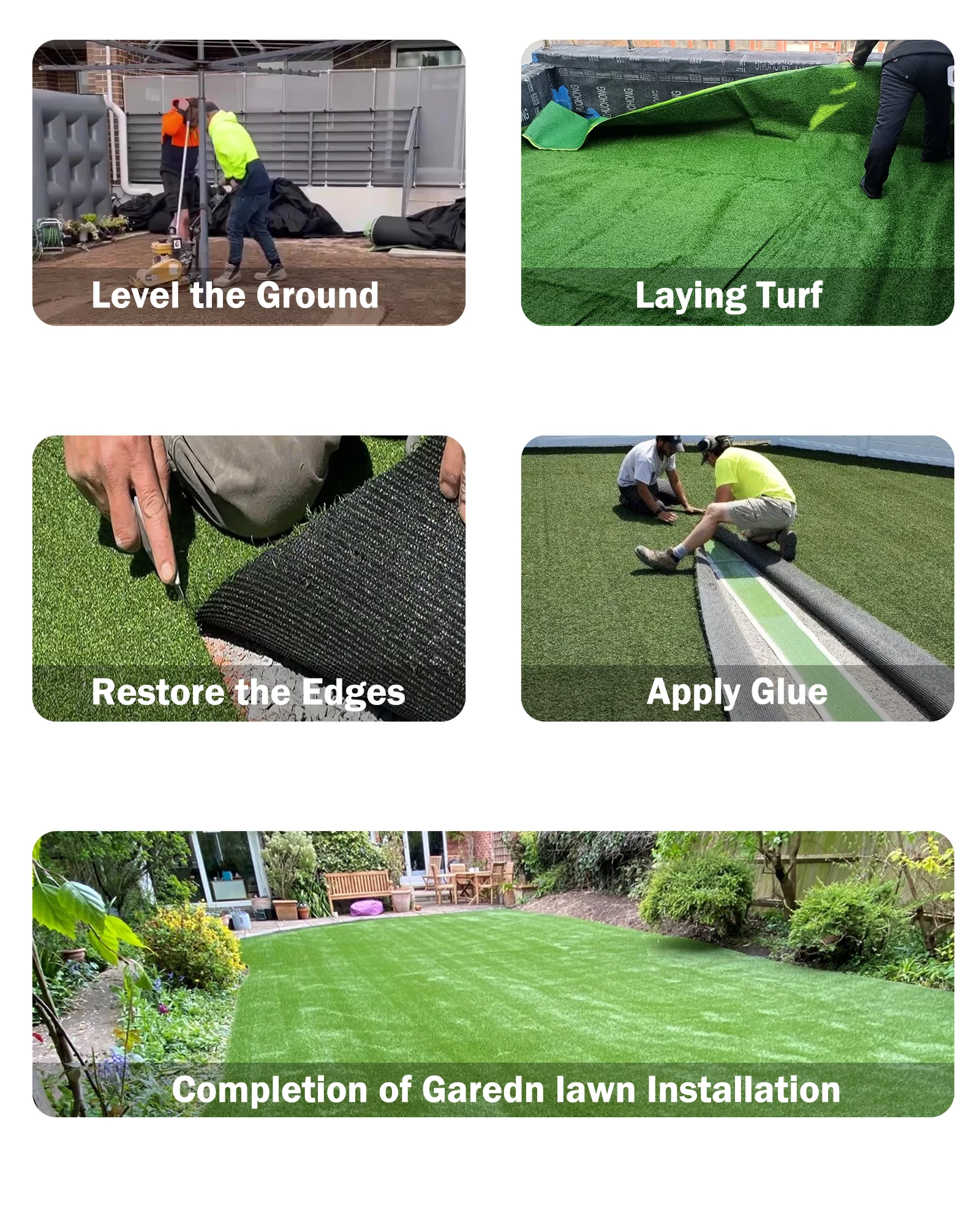 Application scenarios:Suitable for residential gardens (low-maintenance recreational lawns) (children's play areas), commercial and public spaces (hotel resort landscaping) (office building rooftops and terraces), special and decorative applications (balcony greening) (rooftop gardens), etc.