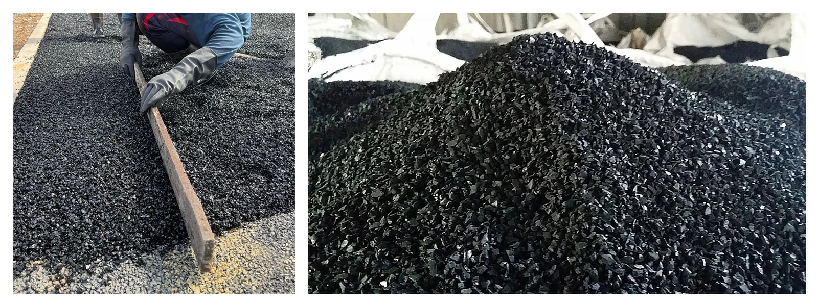 This material is primarily composed of SBR rubber as the base material, with the addition of additives and fillers. It exhibits excellent flexibility, elasticity, and resistance to external factors. SBR granules are black in colour. Due to their cost-effectiveness, they can be used as the base layer for sports and recreational facilities.