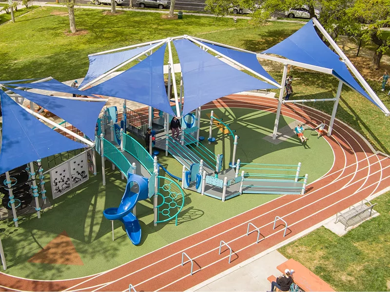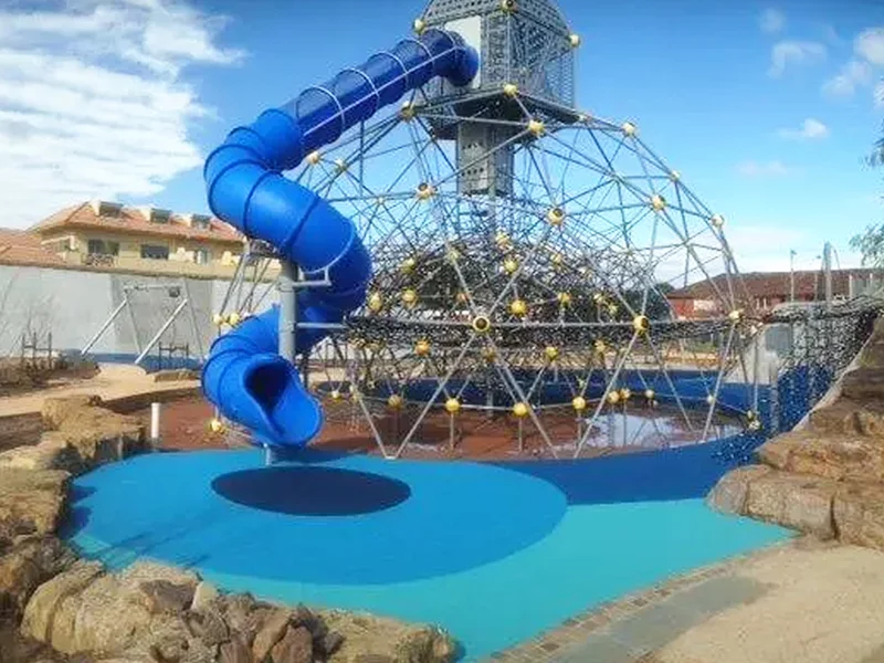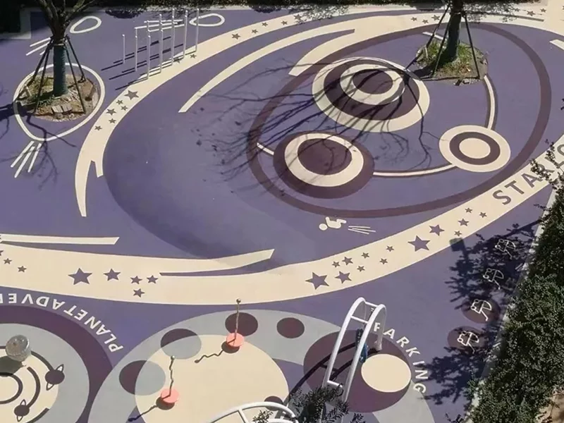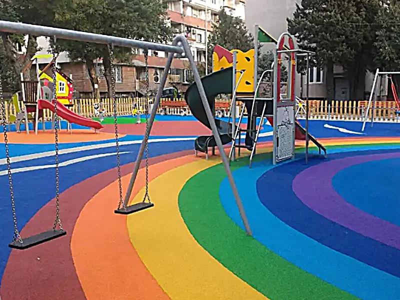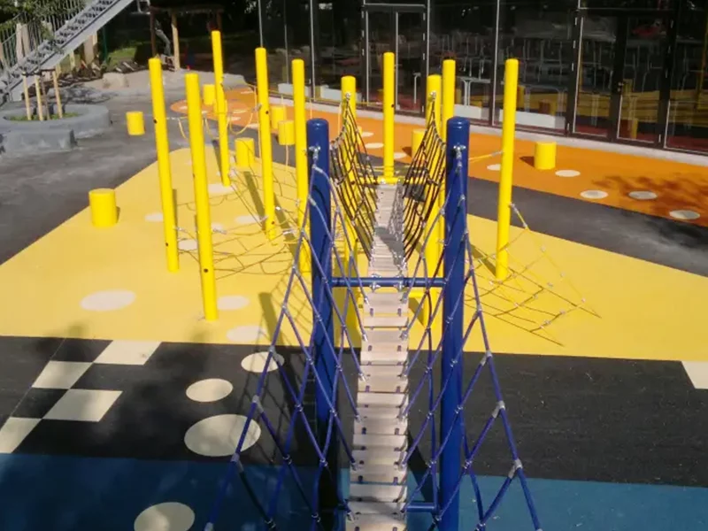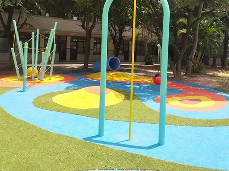 This vibrant space is built on the foundation of safety and fun. We use soft, shock-absorbing EPDM rubber flooring to provide a safe and reliable surface for children's explorations, while its vibrant, durable colours create an exciting community landmark.
